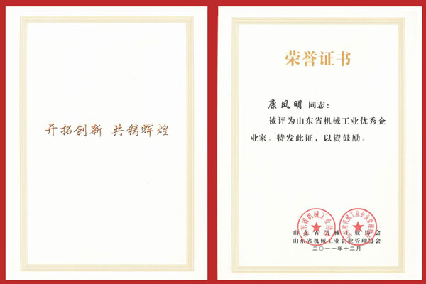 1月10日,山东省机械工业工作会议在泰安市东尊华美达酒店隆重召开,中国机械工业联合会特别顾问朱森第、山东省机械工业协会会长刘卫东、泰安市副市长闫新建等领导出席会议并颁奖。公司董事长、总经理康凤明,常务副总经理潘宪平、副总经理康峰等领导参加会议。董事长、总经理康凤明荣获“山东省机械工业优秀企业家”称号,副总经理朱洪臣荣获“山东省机械工业有突出贡献科技专家”称号,副总经理康峰荣获“山东省机械工业优秀企业(行业)管理工作者”称号。