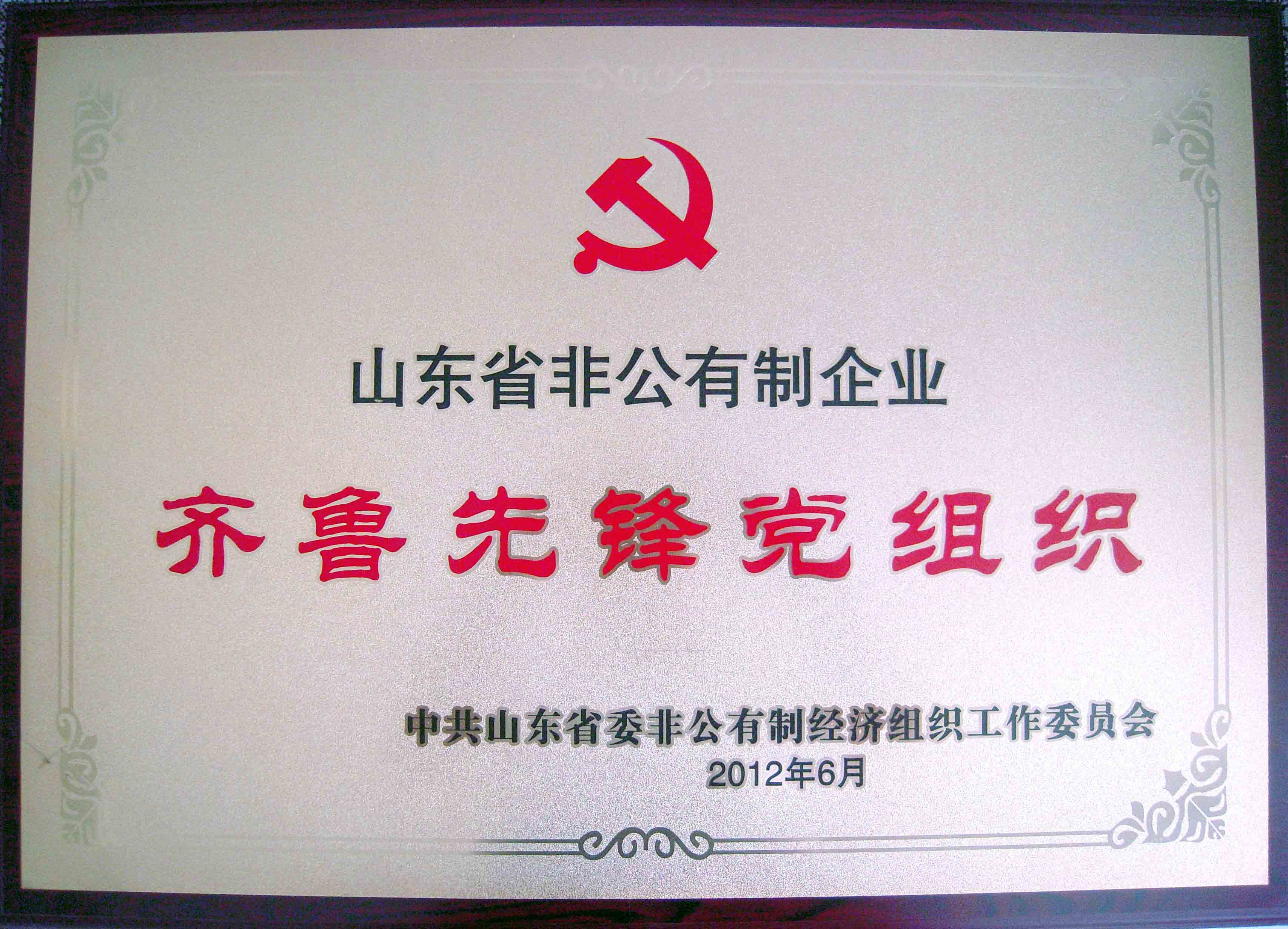 公司党总支荣获“山东省非公有制企业齐鲁先锋党组织”称号